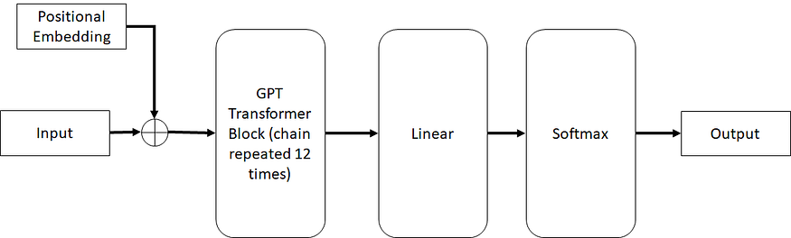Let’s talk about the GPT architecture. This is what is used in most GPT models (with variation across). If you have been following the article thus far, this should be fairly trivial to understand. Using the box notation, this is what the architecture looks like at high level: